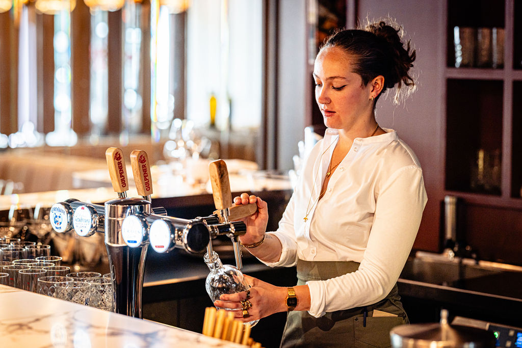 ‘Sowieso eerlijk naar elkaar zijn. En vooral de tijd nemen voor elke gast. Gastbeleving is voor ons erg belangrijk, en daarvoor hebben we ook een heel stappenplan geschreven. Wat doe je als een gast binnenkomt? Wanneer ga je water schenken? En wanneer de wijn? Dat is allemaal onderdeel van gastbeleving.’ Martijn vertelt: ‘Hiervoor werken we nu ook samen met Joris, die ik nog ken van de Groene Lantaarn. Die komt hier een aantal dagen in de week om te helpen met het team te trainen. Wij komen een beetje uit dezelfde school en zitten daarom heel erg op één lijn, dus dat werkt heel goed.’